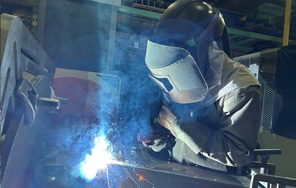 溶接とは、2つ以上の材料を熱や圧力で接合させることを言います。当社の溶接は、材料を溶かして融接するもので、半自動溶接という種類になります。