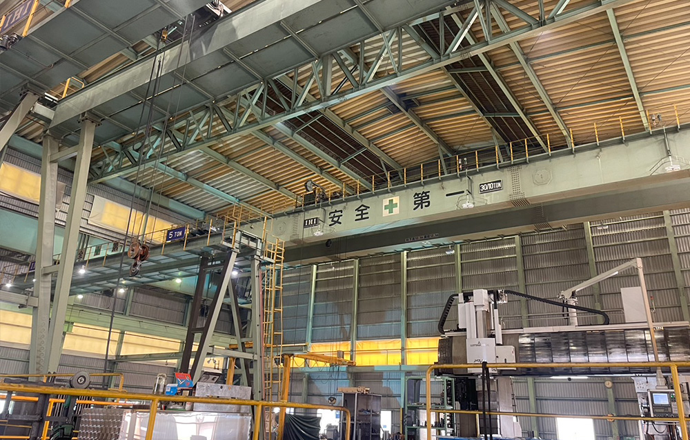 約40台の機械を使って、小物から大物まで、板材、鋳鋼品、製缶品など様々な形状の素材の切削加工を行います。